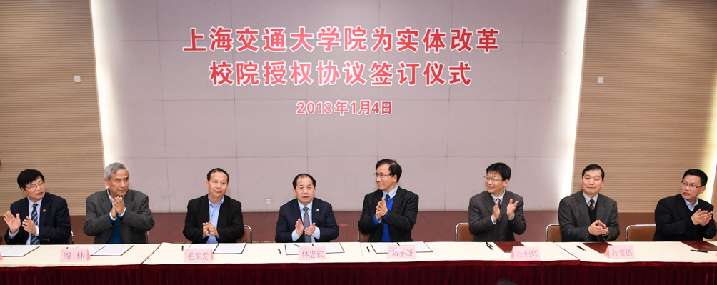 1月4日,上海交大“院为实体”改革校院授权协议签订仪式在闵行校区举行。校党委书记姜斯宪,校长、党委副书记林忠钦等全体校领导,28个院系以及相关部处负责人出席会议。会议由党委副书记顾锋主持。