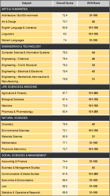 近日,高等教育数据专业调查机构QS(Quacquarelli Symonds)发布了2016年度QS世界大学学科排名(QS World University Rankings by Subject)。此次发布的学科排名包括艺术人文、工程技术、生命医学、自然科学、社会科学与管理五大领域的42个学科,新增人类学、考古学、表演艺术、矿业及采矿工程、护理学及社会政策6个学科。开云网站世界杯入围的25个学科覆盖工、理、生命医学、人文、社科五大学科领域,全部进入全球前200名,入围学科数与去年相持平。其中,16个学科进入全球100强,机械、航空与制造、材料科学等9个学科跻身全球50强,全球50强学科数由去年的7个增加为9个,位居教育部直属高校第三。