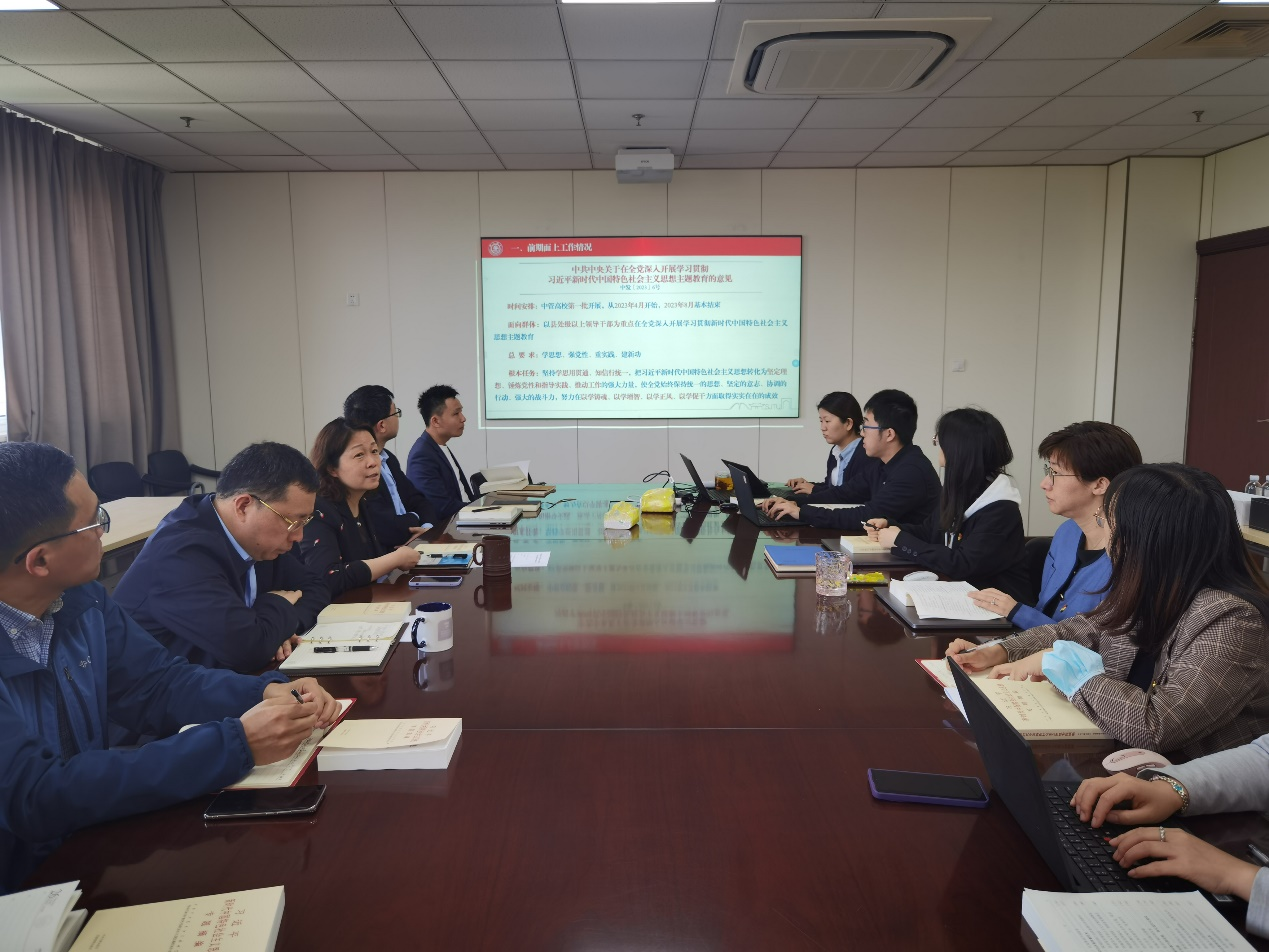 胡薇带领同志们学习了习近平同志在学习贯彻习近平新时代中国特色社会主义思想主题教育工作会议上的重要讲话以及学校对主题教育工作的安排和部署,阐明了本次主题教育的总体要求、重要部署和具体任务。胡薇强调学习贯彻习近平新时代中国特色社会主义思想主题教育的重大意义,指出本次主题教育与以往的不同之处,不划阶段、不分环节,切实把理论学习、调查研究、推动发展、检视整改贯通起来,有机融合、一体推进。更加有利于学思用贯通、知信行统一,把习近平新时代中国特色社会主义思想转化为坚定理想、锤炼党性和指导实践、推动工作的强大力量,努力在以学铸魂、以学增智、以学正风、以学促干方面取得实实在在的成效。
