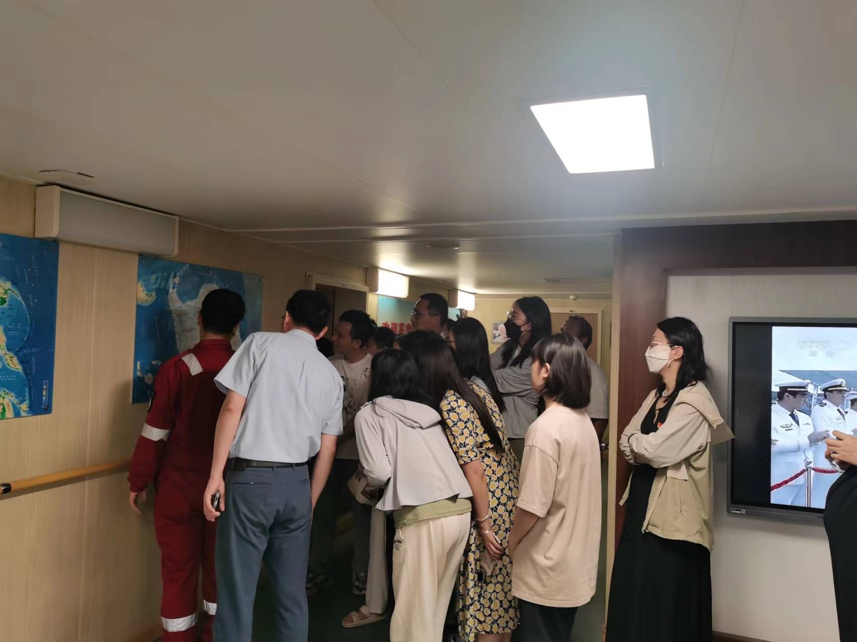 同志们在“雪龙”号三副杨凯带领下,边参观船上主要场所和设施,边聆听“雪龙”号在南北两极的科考任务情况。今年是“雪龙”号入列中国极地考察30周年,“雪龙”号团队每年都有近半年的时间在科学考察的路上,如果遇到同时有南北两极的科考任务,在基地休整时间则不足3月。正是一代代极地工作者勇斗极寒、坚韧不拔、拼搏奉献、严谨求实的精神,为我国和世界极地探索研究取得了一系列突出成果。